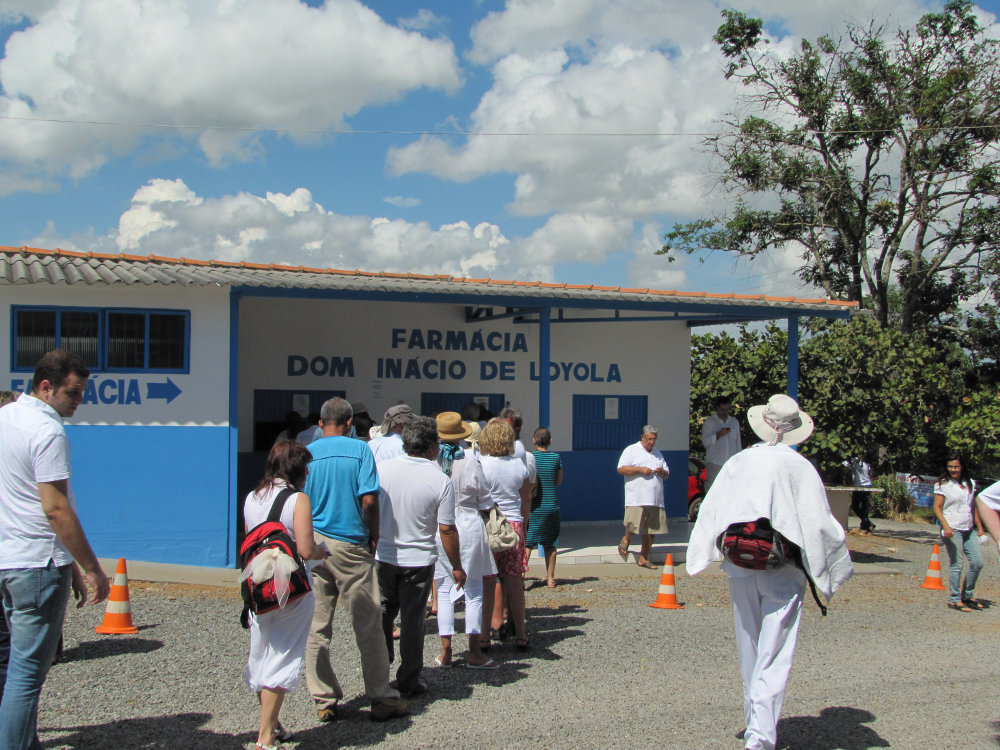 Samstag früh, gleich nach dem Frühstück, fahren wir im Privattransfer ins etwa 70 km entfernte Heilungszentrum Recinto da Caridade Adolpho Bezerra de Menezes, wo Medium Valentim behandelt. Meistens hält die Ärztin und Leiterin des Zentrums Cherifa oder sonst eine andere langjährige ehrenamtliche Mitarbeiterin einen Einführungsvortrag. Dabei gibt es auch praktische Hinweise zur Heilungsarbeit, die wir ins Deutsche übersetzen. Deswegen bemühen wir uns, früh dort zu sein. Bei Valentim kommen immer wieder neue Menschen im Laufe des Vormittags, es ist ein Kommen und ein Gehen. Viele Brasilianer suchen sein Heilungszentrum bei jeder Erkrankung auf und bald nach der Behandlung fahren sie wieder. Wenn wir an der Reihe sind, geht jeder einzeln zu Valentim. Nishavda übersetzt das Anliegen bzw. die Diagnose, während das Heilmedium im Energiefeld des- oder derjenigen mit seiner Schere arbeitet. Nach Beendigung unserer Behandlungen bei Medium Valentim fahren wir auf dem Rückweg ins malerische Dorf Olhos d`Agua mit seinen kreativ bemalten bunten Häusern, wo samstags ein Kunsthandwerkermarkt stattfindet. Dort kann man auch gut essen. Danach fahren wir wieder ins Oasis de Luz.